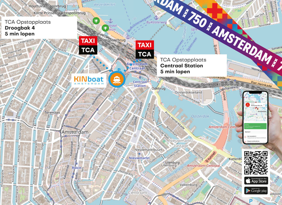 Bij het boeken van je KINboat-rondvaart kun je direct aangeven of je gebruik wilt maken van een TCA Taxi. Zo reis je comfortabel en zonder zorgen van en naar de opstaplocatie. De chauffeurs van TCA brengen je veilig naar het vertrekpunt bij Amsterdam Centraal Station of halen je na afloop weer op, zodat je jouw avond ontspannen kunt afsluiten.